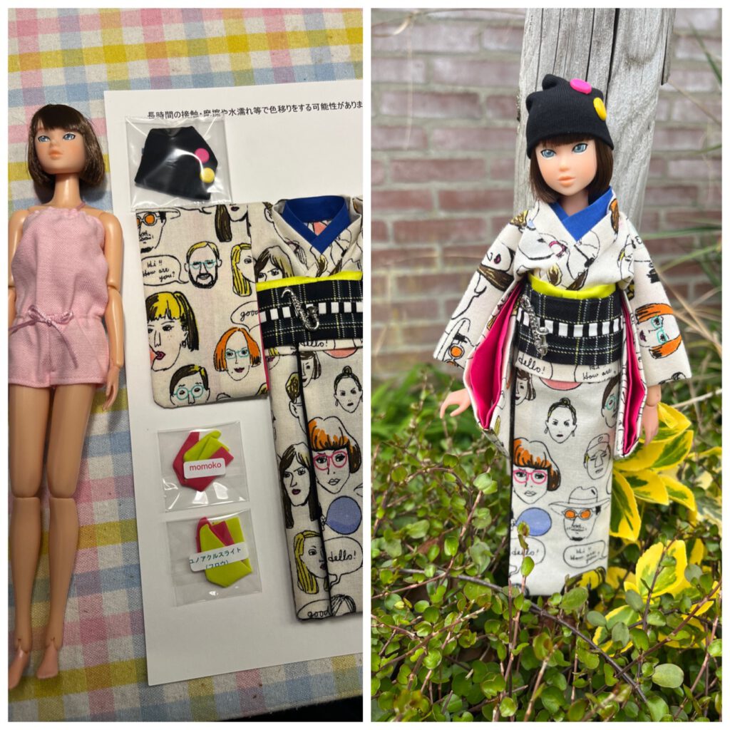 Excellent craftmanship with whimsical fabric for the kimono for Momoko